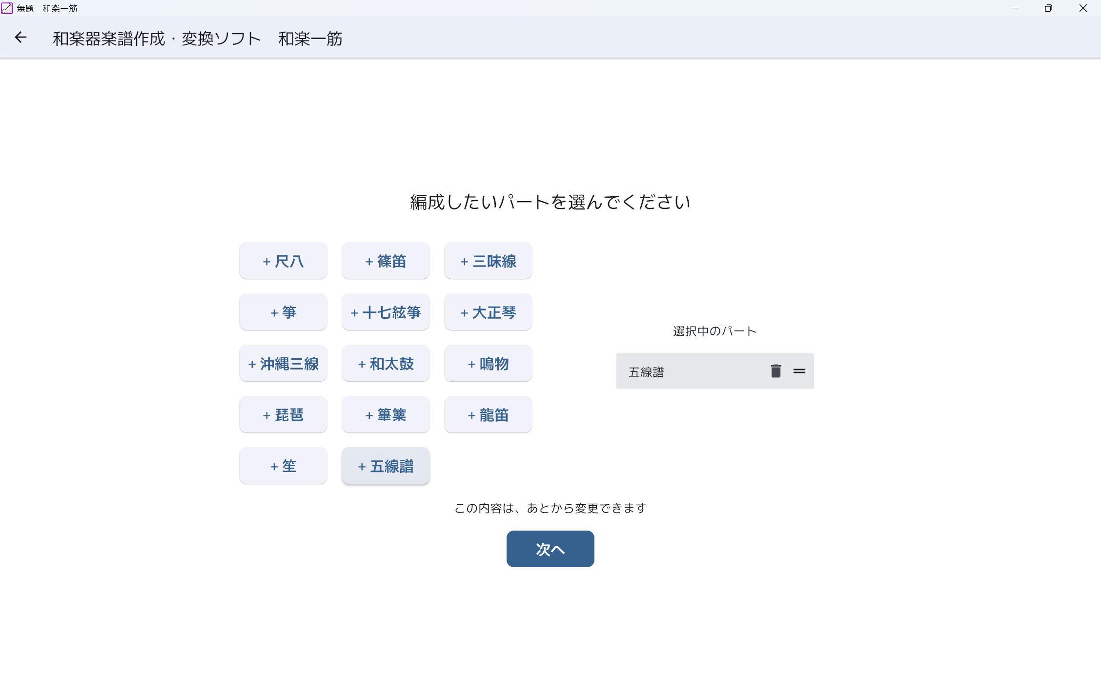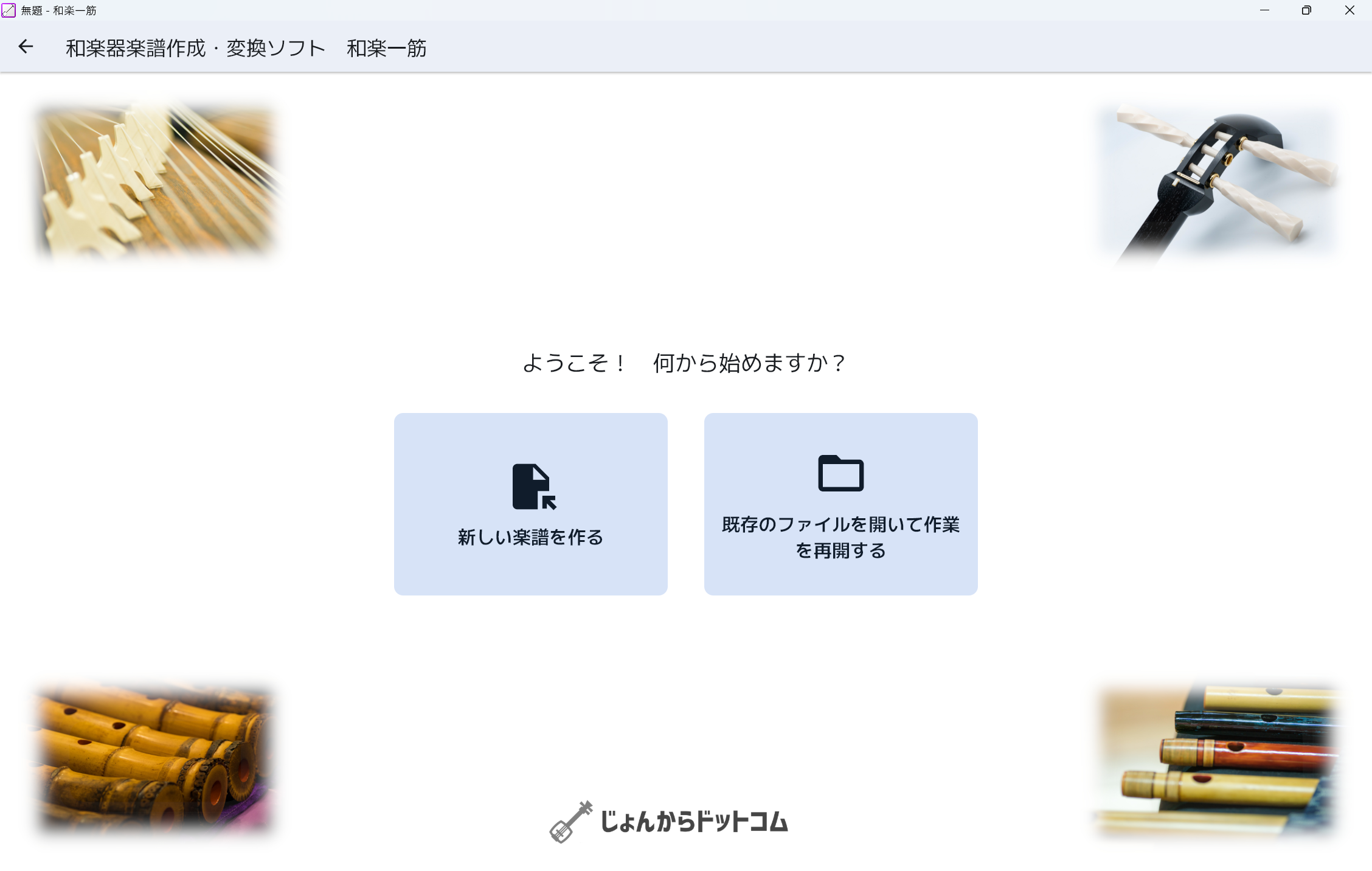 - 和楽一筋を起動して、「新しい楽譜を作る」を選びます。