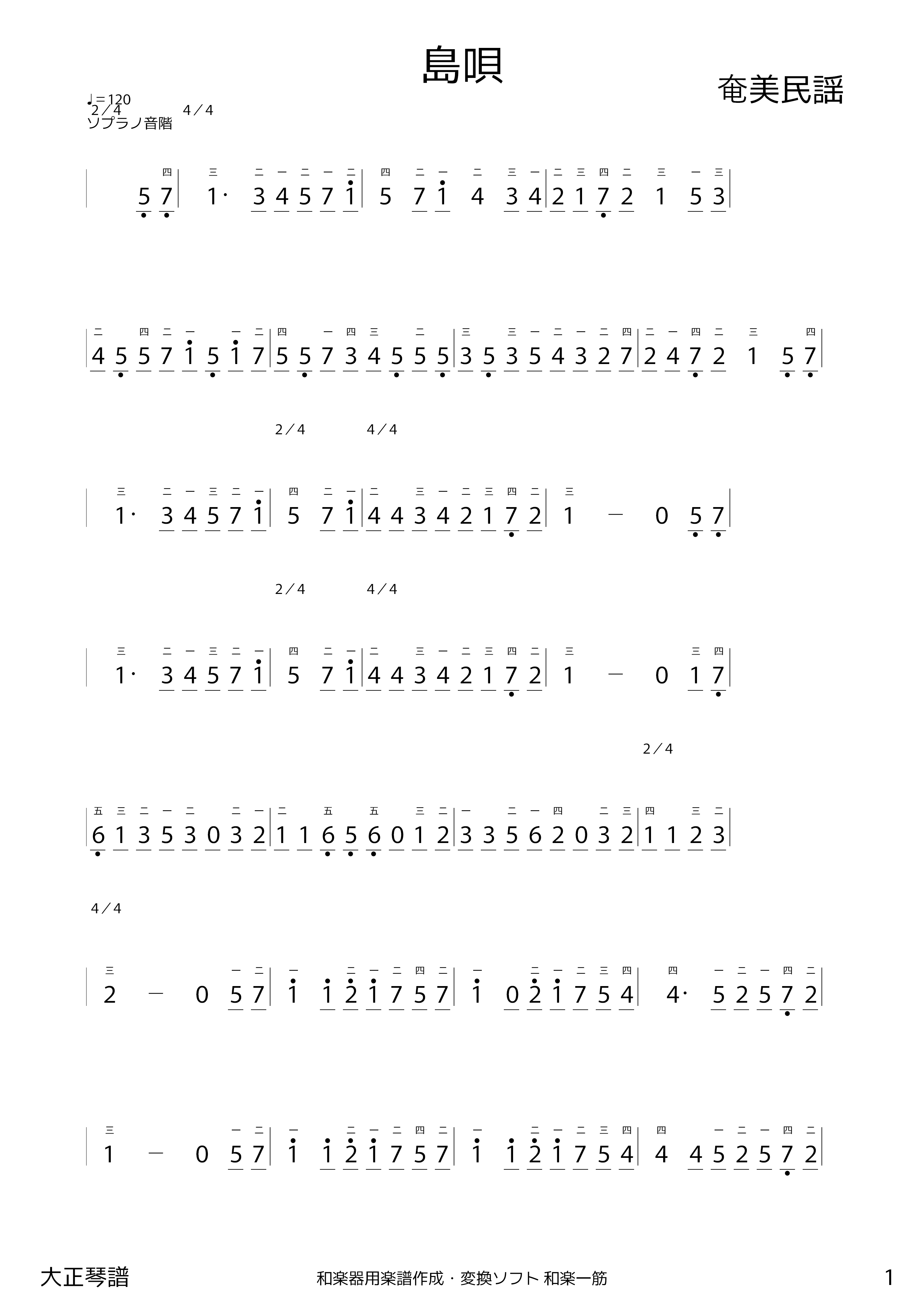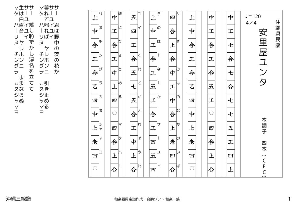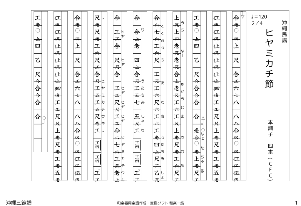 和楽一筋を利用して作成した楽譜の画像と参考音源です。