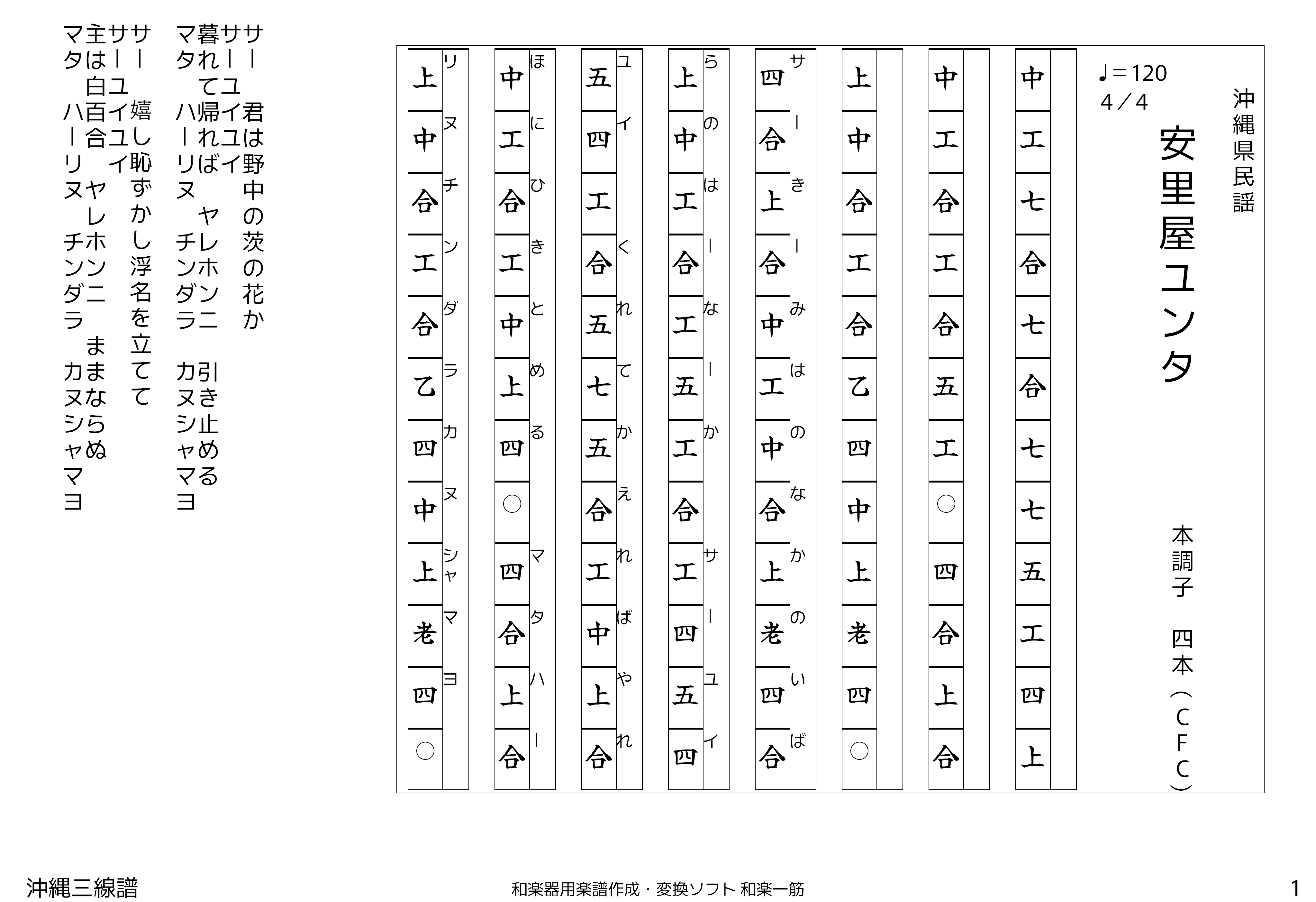 楽譜ファイル 安里屋ユンタ(沖縄三線).wgk
