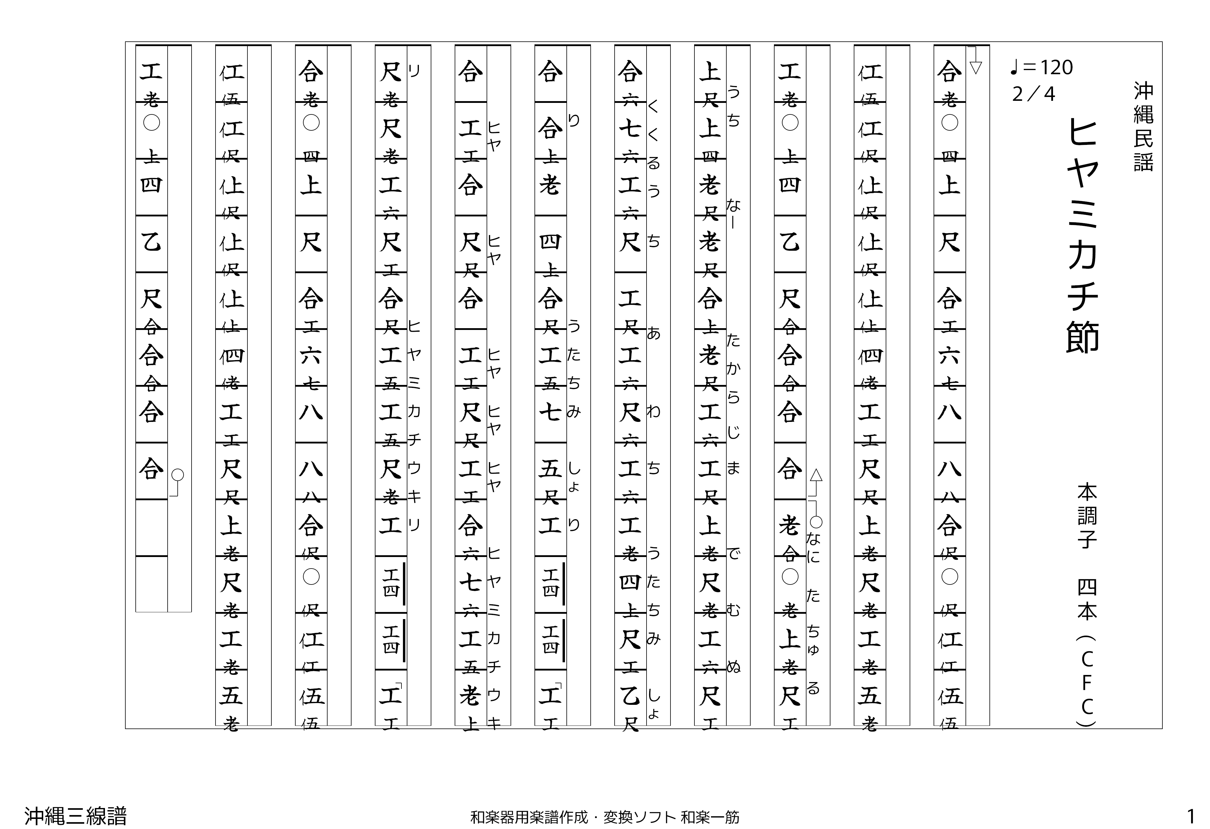 楽譜ファイル ヒヤミカチ節(沖縄三線).wgk
