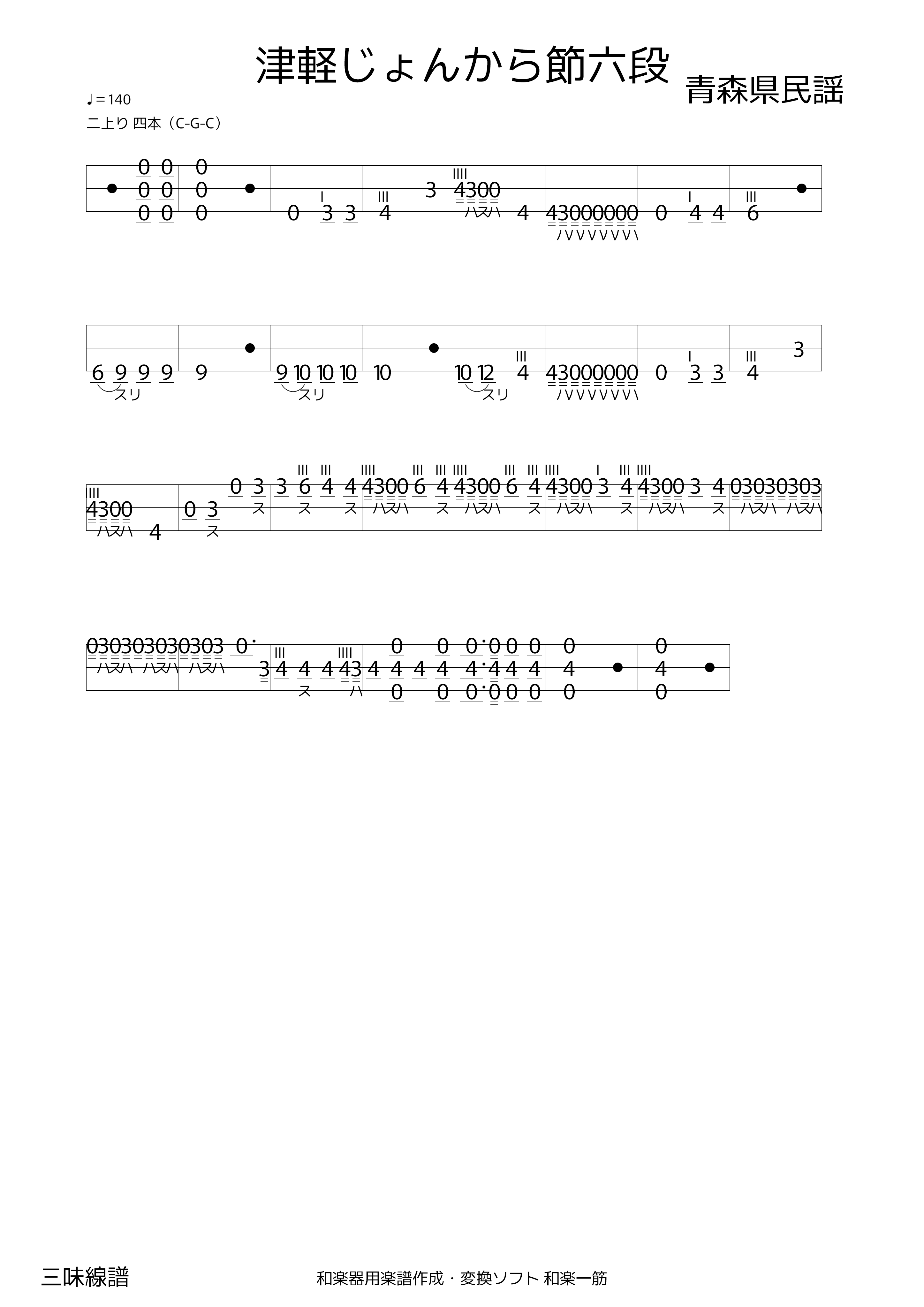 楽譜ファイル 津軽じょんから節六段(三味線).wgk