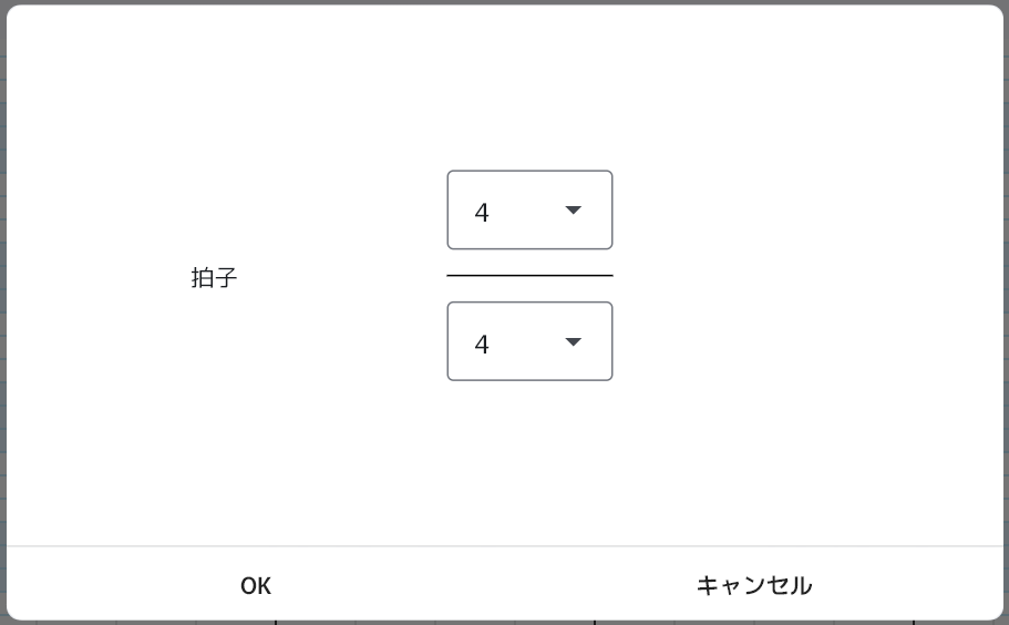 何分の何拍子にするかを設定して「OK」をクリックします。