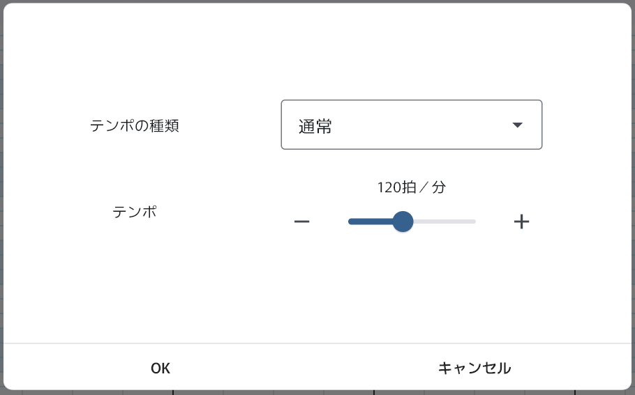 - 「通常」が選択された状態で、中央のバーを左右に動かしてテンポを設定し、 「OK」をクリックします。