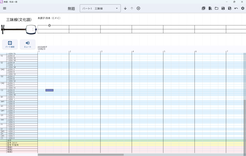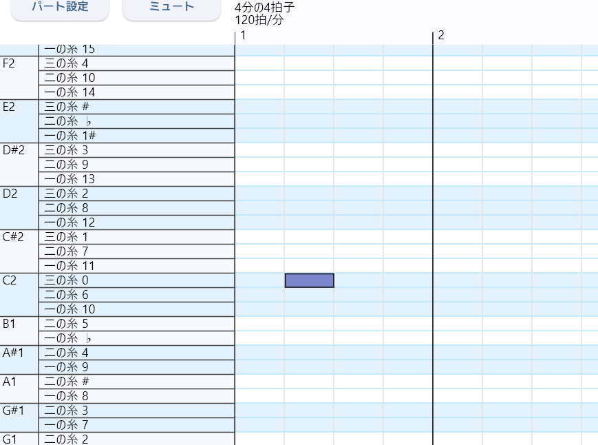 - ピアノロール画面内で、配置したい場所をクリックします。