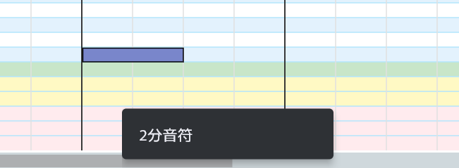 - 音符の長さを修正する場合は、音符バーの左端か右端にカーソルを合わせます。
