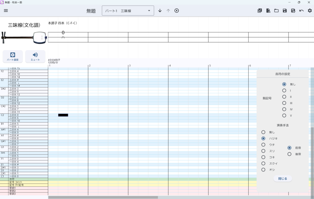設定したい項目を選ぶと、すぐに譜面に反映されます。