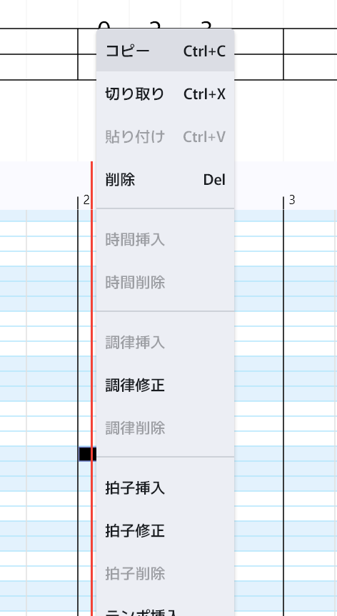 上記の方法で切り取りまたはコピーした音符を、任意の場所に貼り付けることができます。
